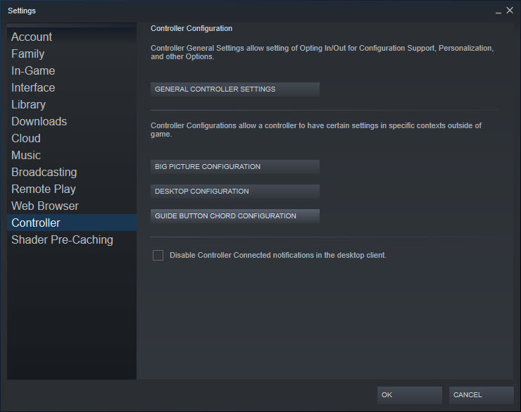 Valve는 PC 게이머가 다양한 게임 컨트롤러를 사용한다는 점을 인식하여 Steam에 즐겨 사용하는 게임 컨트롤러(패드)로 플레이하는 데 필요한 도구를 제공했습니다. Steam > 설정 > 컨트롤러를 클릭하면 표준 Steam 보기 또는 Big Picture 모드에서 사용할 사용자 정의 구성을 설정할 수 있습니다.