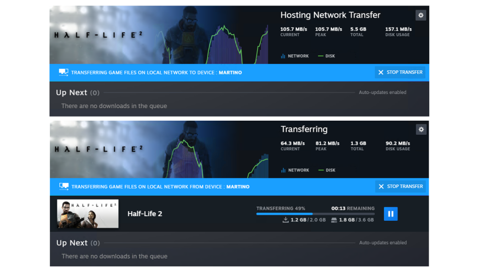 원래 PC의 로컬 게임 저장 및 구성은 LAN을 통해 전송되지 않습니다. 마찬가지로 Steam Workshop, Steam Cloud 및 Steam Shader 파일은 상위 PC에 남아 있습니다.