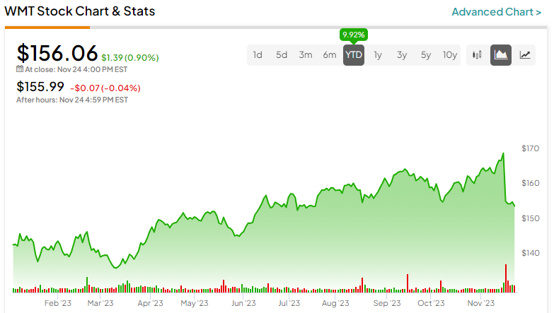 글로벌 소매 대기업인 Walmart( NASDAQ:WMT )의 광범위한 시장 입지와 스마트한 성장 전략은 지금까지 성공 스토리의 초석이었습니다. 최근 견고한 2024년 3분기 회계연도 결과에서 알 수 있듯이 올해 어려운 거시적 환경은 비즈니스에 타격을 줄 수 없습니다. S&P 500( SPX )의 20% 상승 에 비해 주가는 YTD 10% 상승했습니다. 지난 50년 동안 꾸준한 배당금 인상은 사업을 안정적으로 유지할 수 있는 능력을 의미하므로 현재 WMT에 대해 낙관적입니다.