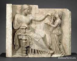 이 작품은 노예 아동과 함께한 여성의 묘비로 묘사되었습니다.보시다시피 아이는 손에 뭔가를 쥐고 있습니다.