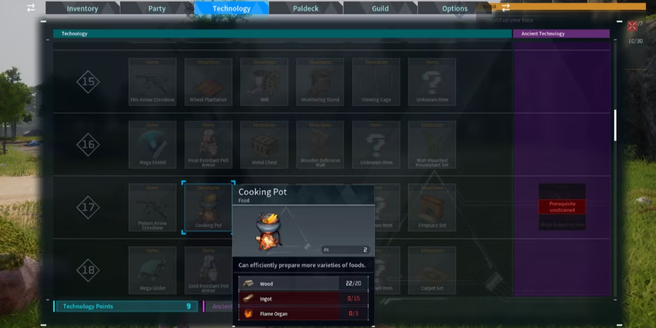 요리 냄비는 섹션 17의 기술 탭에서 잠금 해제할 수 있으며 기술 포인트 2점이 필요합니다. 이 구조를 잠금 해제하면 다음 리소스를 사용하여 구축할 수 있습니다.