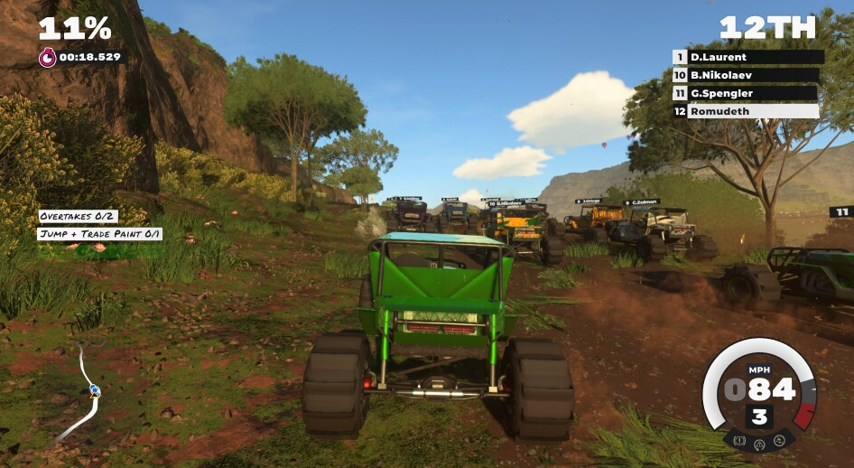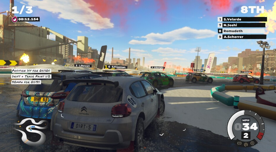 이벤트 외에도 Career의 가장 주목할만한 측면은 인종 간에 발생하는 내레이션입니다. 팟캐스터 AJ(Troy Baker)와 Bruno Durand(Nolan North)가 쇼를 통해 귀하의 경력 발전에 대해 이야기합니다. 베테랑 비디오 게임 배우들의 목소리를 듣는 것은 재미있지만 Dirt 5의 내러티브는 불필요합니다. 레이싱 게임 내러티브는 항상 어색합니다(대표적인 예로 2015년의 해미 풀 모션 비디오 시퀀스가 포함된 Need for Speed 참조). 그것은 고귀한 시도이지만 완전히 불필요한 것입니다. 대부분의 레이싱 게임 팬은 페달을 밟고 싶어합니다.
