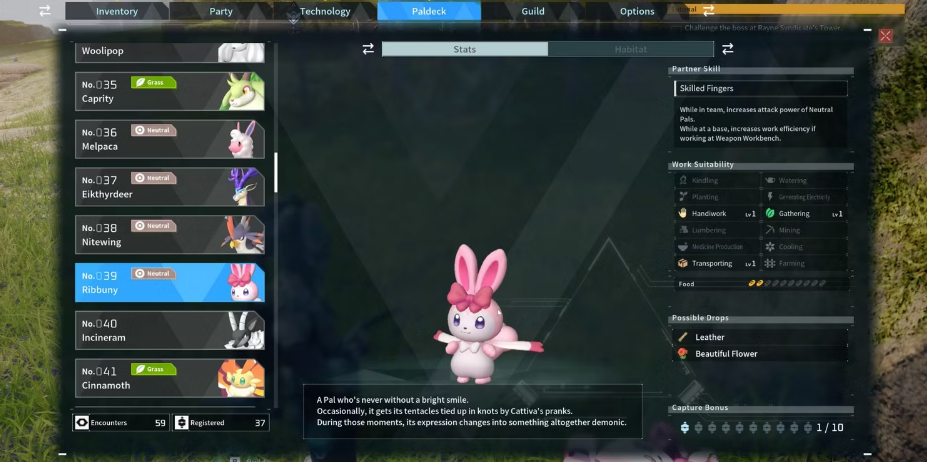 성공 확률은 100%가 아니므로 이 과정을 여러 번 반복해야 할 수도 있다는 점을 명심하세요. Ribbuny로 시작하는 것이 좋습니다 . 이 생물은 남부 및 중앙 숲이 우거진 지역에서 비교적 흔하기 때문입니다. 하지만 레벨이 올라갈수록 라일린에 집중해야 합니다.