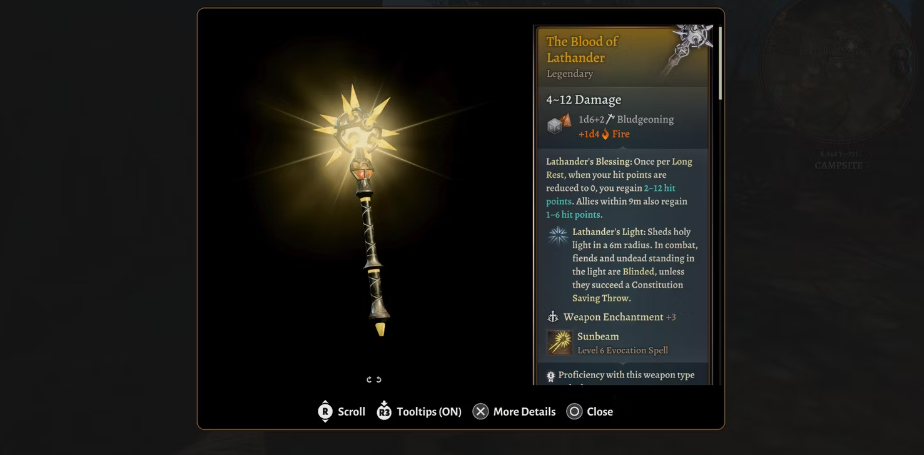 게임 초반에 사용자의 부활을 보장하는 보너스와 함께 The Blood of Lathander는 특히 Lathander의 빛과 Sunbeam을 통해 천재적인 무기를 제공하여 플레이어가 여행을 시작할 때 적을 쉽게 쓰러뜨릴 수 있도록 보장합니다. 2막으로.