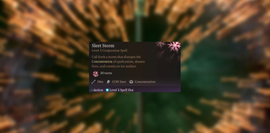 진눈깨비 폭풍은 적들이 주문에 집중하는 것을 막는 특히 강력한 능력을 가지고 있지만, 너무 압도적인 주문이기 때문에 해결하는 만큼 많은 문제를 일으키는 경우가 많기 때문에 3레벨 주문 슬롯을 소비하는 것을 정당화하기 어려운 주문입니다.