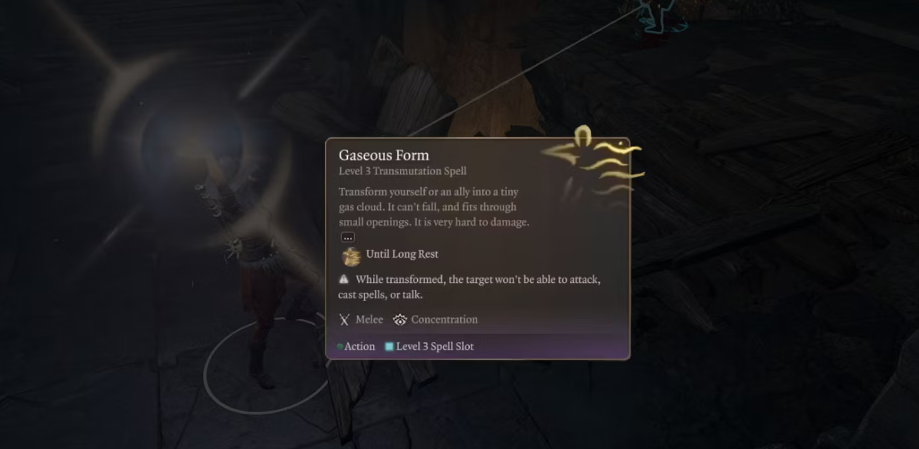 가스 형태를 사용하면 시전자 자신이나 아군 캐릭터를 가스 덩어리로 변신시킬 수 있습니다. 이 3레벨 주문은 대상에게 건강, 민첩, 근력 내성 굴림에 이점을 부여하고, 공격하기 훨씬 어렵게 만들고, 작은 공간에 들어갈 수 있게 해줍니다. 그러나 이는 변형된 캐릭터를 효과적으로 쓸모없게 만들고 어느 정도 전투에서 제거합니다.
