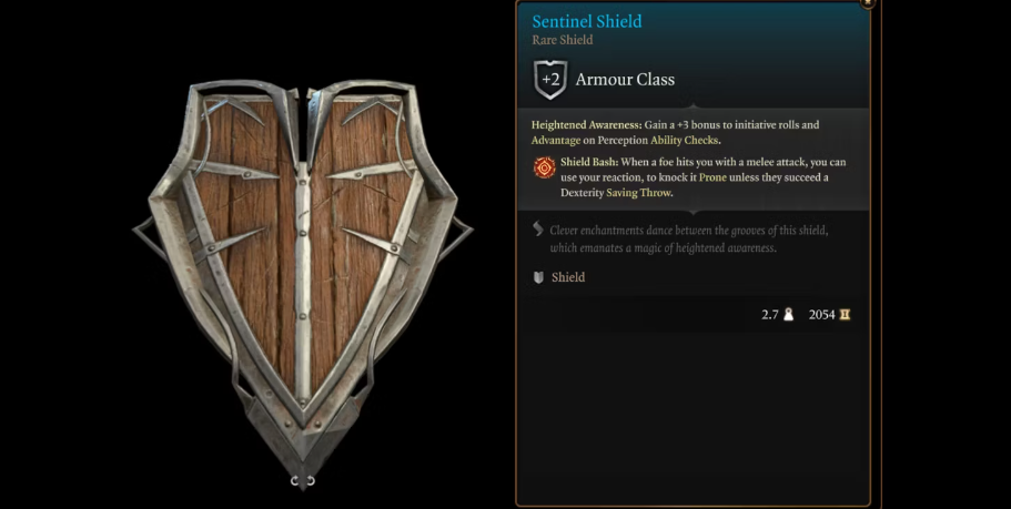 센티넬 쉴드(Sentinel Shield)는 한손 무기를 휘두르는 캐릭터 빌드, 특히 상당히 강력한 DEX를 가진 캐릭터 빌드에 큰 추가 기능입니다. 그 이유는 전투를 위해 우선권을 굴리는 동안 모든 캐릭터가 1d4를 굴리고 민첩 수정자를 추가하기 때문입니다. 이 외에도 Sentinel Shield의 향상된 인식은 이 점수에 추가로 +3을 추가합니다. 즉, 가끔 불확실한 판정을 제외하고 항상 전투에서 먼저 갈 수 있다는 것을 의미합니다.