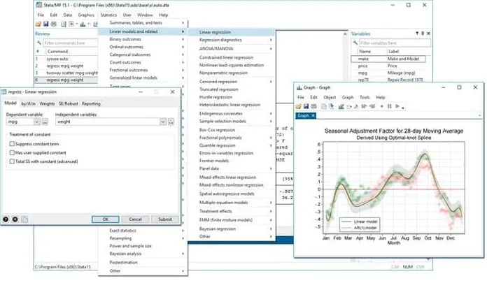 Stata는 또한 쉬운 분석을위한 무료 통계 소프트웨어 중 하나입니다. 데이터를 조작하거나, 모델을 탐색하거나, 시각화하거나, 통계 솔루션을 해결하려는 경우이 무료 통계 도구가 도움이 될 수 있습니다. 이 통계 소프트웨어는 데이터를 마스터하고 고품질 그래픽을 게시하고 동적 문서를 만들고 원본 문서를 수행 할 수있는 데이터 과학을위한 것입니다.