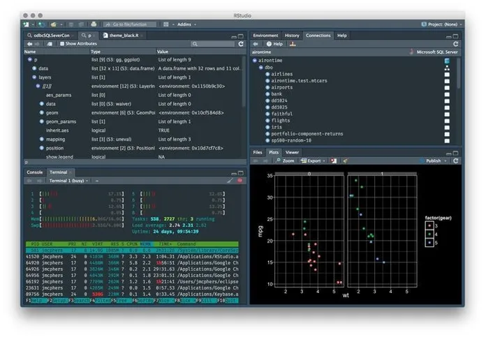 RStudio는 R 코드를 제어 할 수 있습니다. 오픈 소스 및 상업용 버전 모두에서 사용할 수 있습니다. 이 소프트웨어는 데스크탑 또는 클라우드 컴퓨팅에서 사용할 수 있습니다.