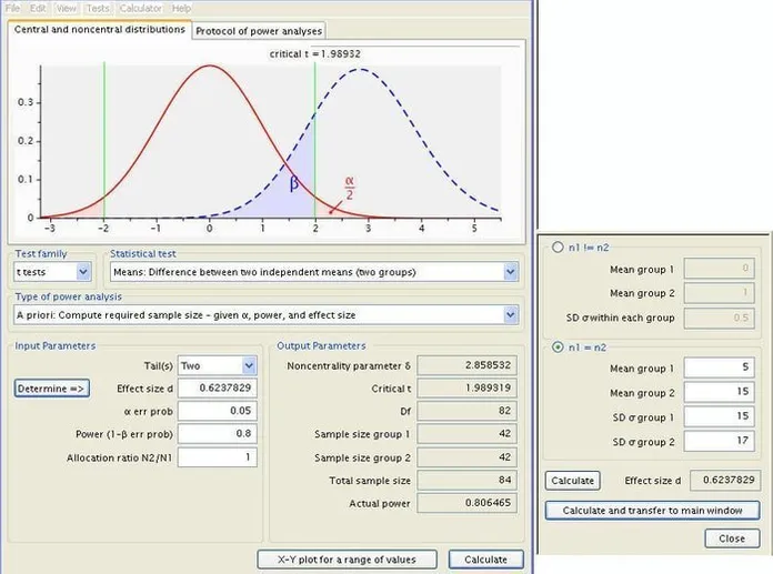 G * Power 통계 소프트웨어는 통계 전력을 계산하는 프리웨어입니다. F- 검정, t- 검정, 카이 제곱 검정과 같은 다양한 통계 문제를 해결할 수 있습니다. 또한 일원 분산 분석 및 다중 분산 분석 문제를 해결할 수 있습니다. 검정력을 계산하려면 그룹 수, 효과 크기, 관찰 및 유의 수준을 포함하는 4 가지 변수를 알아야합니다.