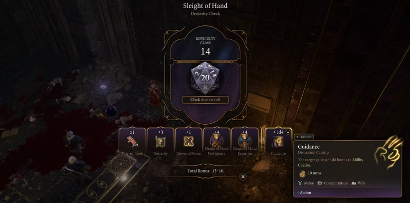 Thieves' Tools를 사용하면 캐릭터가 자물쇠를 열 수 있습니다. 이는 특정 위치에 잠입하거나 열쇠를 위해 경비원과 지저분한 싸움을 시작할 필요를 우회할 수 있는 좋은 방법입니다. 캐릭터는 이러한 도구를 사용하여 음유시인과 도적이 클래스 혜택 중 하나로 사용할 수 있는 Sleight of Hand 기술을 사용하여 자물쇠를 열 수 있습니다.