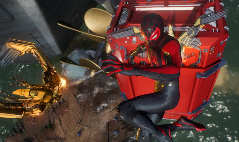 프로처럼 웹 라인에서 쉽게 스윙할 수 있었던 첫 번째 게임의 짜릿한 횡단 메커니즘이 돌아왔지만, 이제 Insomniac에 윙수트 기능이 추가되어 Spider-Man도 장거리 활공이 가능해졌습니다. 그것은 아름답게 작동하여 유동성과 우아함을 향상시키며, 여러분이 멀리 아래에 있는 도시의 번잡함인 하늘로 올라가기 전에 틈 같은 길을 따라 급강하할 수 있게 해줍니다. 특정 거리를 따라 그리고 허드슨 강과 이스트 강을 따라 흐르는 바람의 도움을 받아 장거리 공중에 떠 있을 수 있어 정말 멋진 느낌입니다. 덜 확신하는 사람들에게는 글라이딩이 웹 슬링을 거의 쓸모없게 만드는 강력한 기능일 수도 있지만, 대신 너무 초인적인 느낌없이 도달 범위를 확장할수 있는 완벽한 파트너입니다.