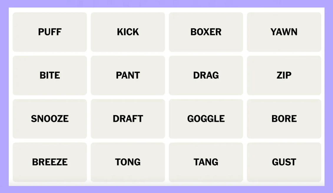 Connections는 16개 단어로 구성된 그리드와 임무를 제공합니다. 자신을 당황하게 하지 않고 서로 다른 네 가지 단어 집합 사이의 공통 스레드를 감지합니다. 그룹화 논리는 단순한 것(“동물”)부터 어리석은 것(“방귀의 동의어”), 은밀한 것(“문자 'A'가 추가된 국가”)까지 다양합니다. 이 퍼즐이 BBC의 오랫동안 운영된 Only Connect 의 복제품일 뿐이라고 주장하는 무뚝뚝한 게임 쇼 시청자들은 내면의 개성을 그리워합니다. Connections 작가 Wyna Liu는 주제별 격자를 구성하고 동의어 변화구를 던지면서 매일의 퍼즐에 엄청난 재치를 발휘합니다. 그리고 Wordle 과 마찬가지로 네 세트를 모두 착지했을 때 성취감이 있습니다. 하루를 시작하는 가장 좋은 방법은 친구와 가족에게 Connections를 완전히 달성한 것에 대해 칭찬하는 것입니다.