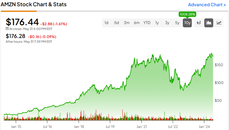 전자상거래 및 클라우드 거대 기업인 Amazon( NASDAQ:AMZN )은 지난 10년 동안 약 1,000%의 수익률을 달성한 후 향후 10년 동안 성장할 준비가 되어 있습니다 . 최근 실적 호조에 힘입어 최근 주가가 사상 최고치를 경신했습니다. 이러한 이익에도 불구하고 AI, 강력한 소매 모멘텀, 최적화 이니셔티브를 통한 마진 및 현금 흐름 확대에 힘입어 Amazon의 AWS 성장이 다시 가속화되면서 주식에 대한 낙관적인 생각이 들었습니다.
