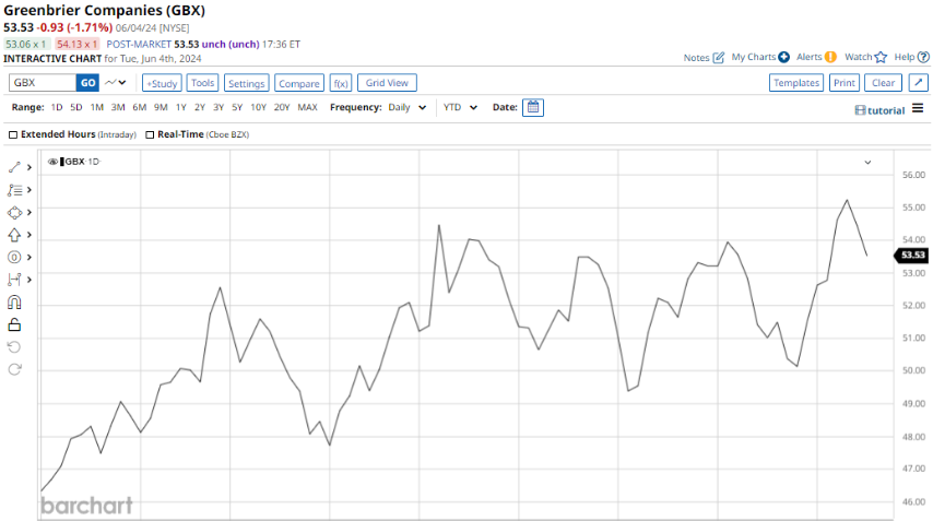 1981년 Greenbrier Leasing Corporation과 James-Furman & Company의 합병을 통해 설립된 Greenbrier Companies (GBX)는 운송, 제조 및 화물 서비스 분야의 글로벌 리더입니다. 그들의 핵심 사업은 철도 차량 제조, 임대 및 수리 서비스에 중점을 두고 있습니다. 현재 시가총액은 16억 7천만 달러이다.