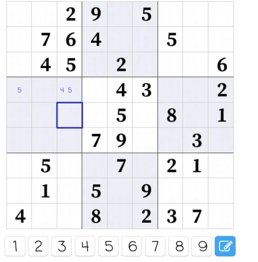 - 빈 셀을 채울 때 동일한 행, 열 또는 블록에서 숫자를 두 번 사용할 수 없습니다.