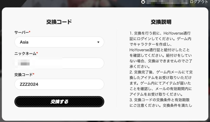 젠레스존 제로 공식 사이트 에서 교환 코드 입력이 가능합니다. 사이트를 방문하여 HoYoverse 통행증에 로그인합니다.