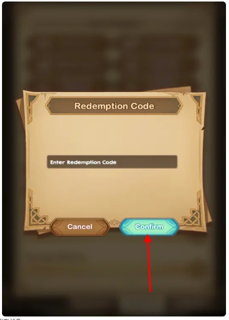- AFK Arena 코드를 입력하고 확인 버튼을 탭하세요.
