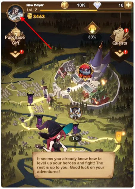 - 게임을 열고 왼쪽 상단에 있는 캐릭터 아이콘을 클릭하세요.