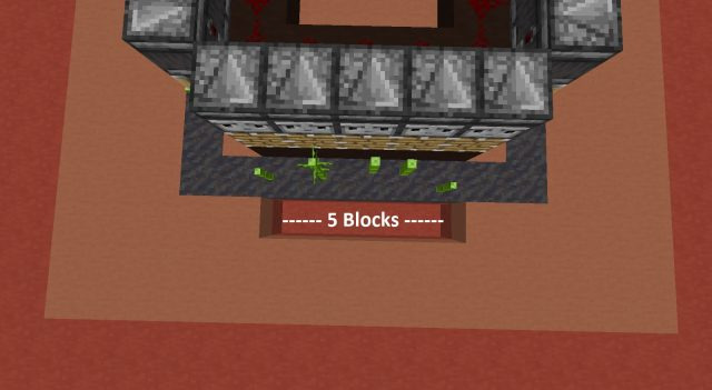 작동: 결국 대나무는 자라서 관찰자 앞에 나타나서 레드스톤 신호를 보냅니다. 한 관찰자가 보낸 신호는 레드스톤 가루를 통해 모든 피스톤에 도달하여 활성화됩니다. 그러면 피스톤이 앞에 있는 대나무 조각을 깨서 아이템으로 떨어뜨립니다.