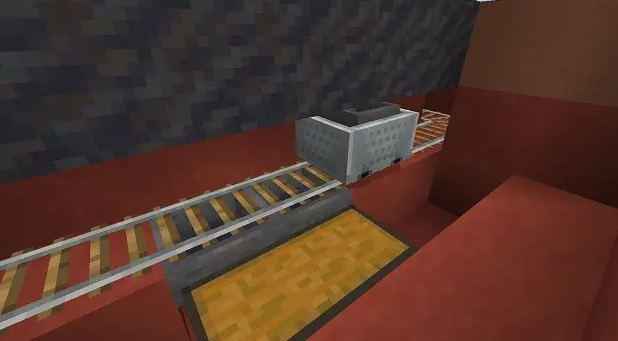 2. 그런 다음, 미니카트를 살짝 밀어서 레일을 따라 움직이도록 해야 합니다 . 호퍼 위에 있는 진흙 블록에 함정문을 설치한 다음, 그것을 사용하여 수영 모드로 전환하는 것이 좋습니다. 그런 다음, 미니카트를 쉽게 밀어서 시작할 수 있습니다.