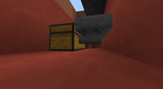 3. 이제 원래 참호에 큰 상자를 놓고 두 개의 호퍼로 연결합니다 . 이 호퍼는 상자 뒤에 놓아야 하며 진흙 블록 아래에 있어야 합니다(하지만 한 블록 간격이 있어야 함).