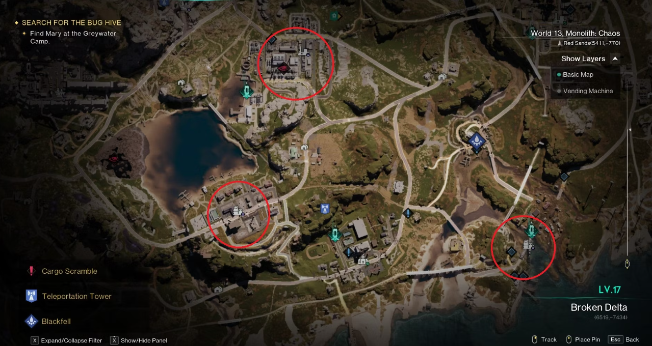 Blackfell Fallen에 대한 레벨이 충분하지 않다면 Greywater Camp 주변의 Strongholds와 POIs가 충분할 것입니다. 원스휴먼(Once Human)의 Refinery Pollution Point는 다용도 플라스틱(All Purpose Plastic)과 같은 T3 자원을 찾기에 좋은 곳이며, 근처의 Greywater Industrial Zone과 East Blackfell Junction 지역도 마찬가지입니다. Sunbury, Sutherland Chemical Plant, Broken Delta의 Harborside 와 같은 장소 도 약탈하기에 좋은 장소입니다.
