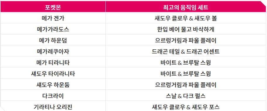 다크와 고스트 타입의 기술을 가진 포켓몬이 선호됩니다. 따라서 메가 티라니타와 메가 겐가가 이 목록에 있는 이유입니다.