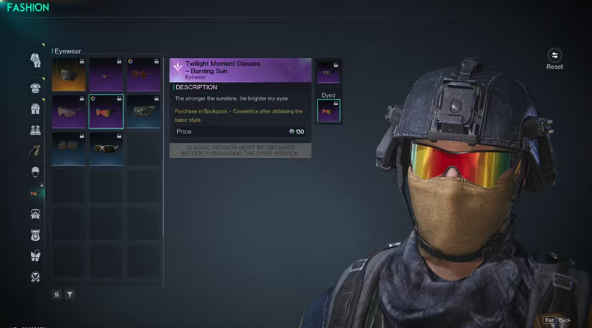 유효한 화장품 아이템을 선택하면 해당 아이템의 일반 변형 아래에 염색된 버전이 있는 것을 볼 수 있습니다. 염색된 버전을 선택한 다음, 다채로운 배지를 사용하여 잠금 해제하세요.