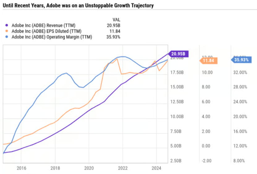지난 1~2년 동안 어도비(Adobe) 수익 전화 회의에 참석했다면 AI가 혁신을 가속화하고 더 나은 고객 경험을 만들어 어도비(Adobe)의 전례 없는 성장을 가능하게 한다는 큰 약속을 들었을 것입니다. 하지만 지금까지 어도비(Adobe)의 더 높은 지출은 단순히 최종 이익으로 이어지지 않았습니다.