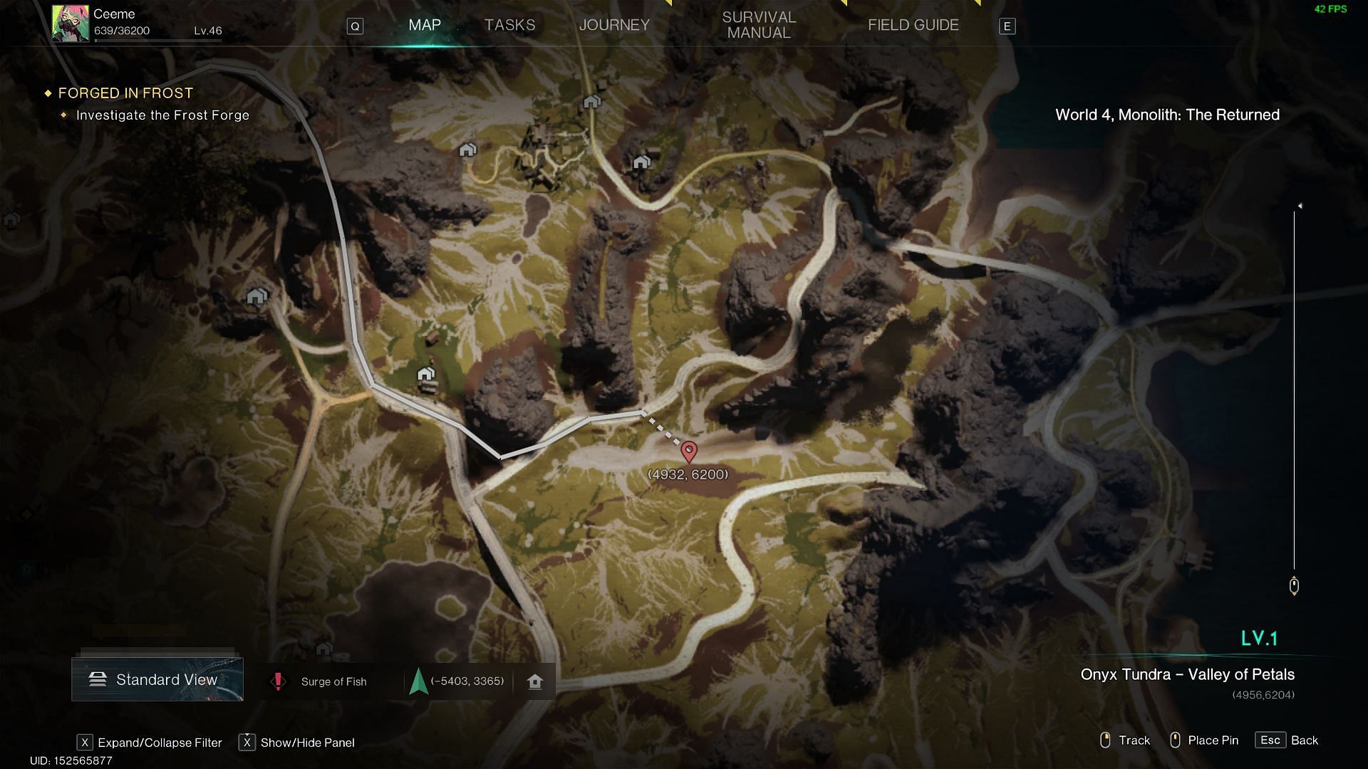 위 이미지에 표시된 Onyx Tundra's Valley of Petals의 일부에는 Stardust Ore가 많이 포함되어 있습니다. 이 광석은 전기로에서 Stardust Source와 Portable Mixed Fuel을 제작하는 데 도움이 됩니다.