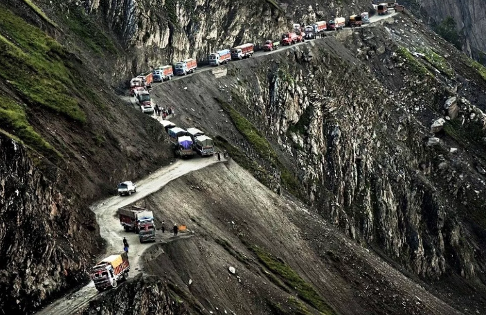 ▽이 도로는 Zoji라는 인도의 높은산을 통과하는 도로로 인도 샤리와 이쉬타리를 잇는 길인데, 우기에는 커브 길을 돌다 떨어지는 차가 허다하며 군데군데 추락한 차들의 표시가 남아있어 세계에서 가장 위험한 도로 중 한곳으로 꼽힙니다.