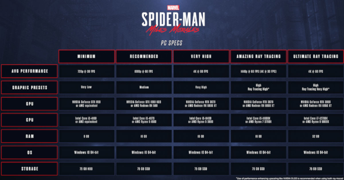 마블 스파이더맨: 마일즈 모랄레스 – PC 성능