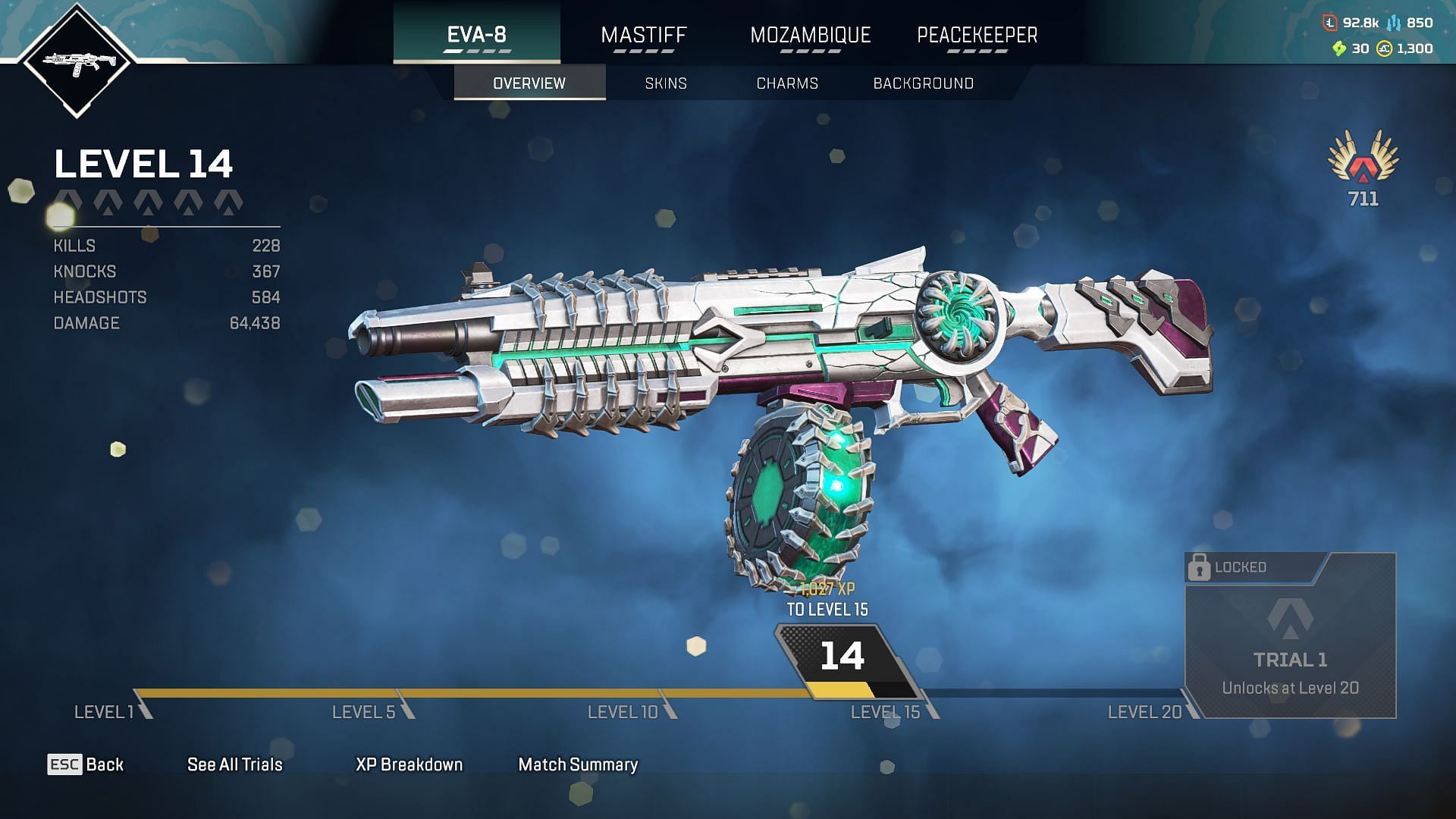 EVA-8 자동 산탄총은 에이펙스 레전드 런치 로얄 모드에서 Peacekeeper가 얼마나 일관성이 없는지 때문에 이 목록에 자리를 잡았습니다. 이 산탄총은 총 8발을 발사할 수 있어 쉽게 쓰러뜨릴 수 있습니다. 효능을 높이기 위해 추가 홉업이 필요하지 않으므로 집어든 직후 바로 전투에 나설 수 있습니다.