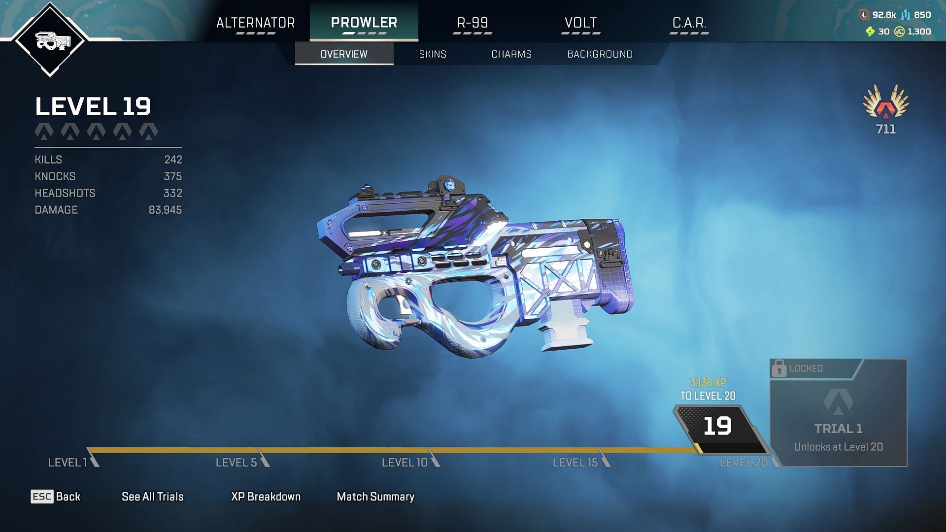 우리는 특정 부착물을 장착했을 때 무기가 얼마나 강력한지 단순히 Prowler를 이 목록에 포함하기로 했습니다. 이 기관단총은 중화기 부착물과 가장 중요한 Selectfire Receiver 홉업을 장착할 수 있습니다. 앞서 언급한 홉업을 통해 Prowler는 완전 자동 모드에서 발사할 수 있습니다. 무기의 데미지는 버스트 무기로 조정되었기 때문에 완전 자동이 된 후에는 땀 한 방울 흘리지 않고 보라색 방패를 깨뜨릴 수 있습니다.