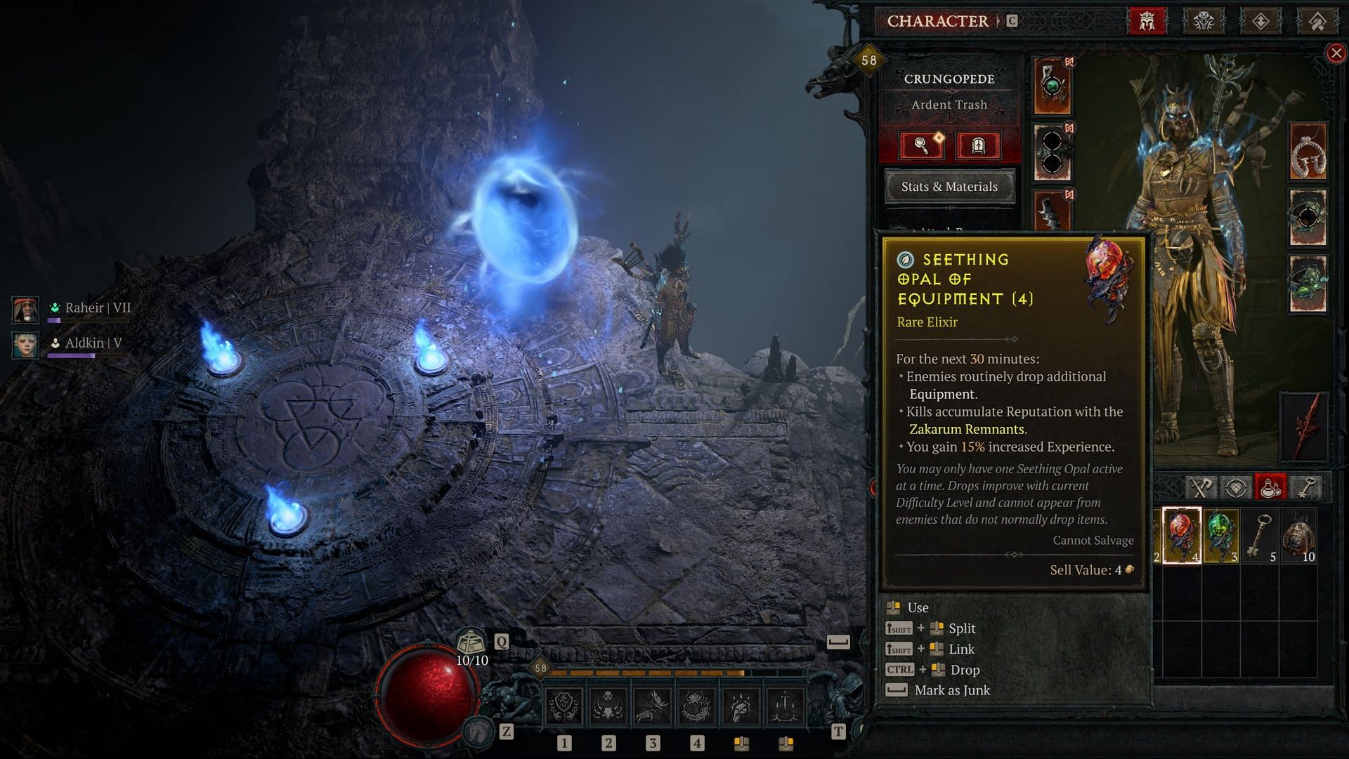 그런 다음에야 Seething Portal에 들어가 미니 던전에 참여할 수 있습니다. 이렇게 하면 Seething Opals를 잠금 해제할 수 있는데 , 제가 이 시즌에서 가장 좋아하는 부분입니다. 이 엘릭서는 어디에서나 시즌 평판을 얻을 수 있게 해주고, 제작 재료, 장비 또는 골드와 같이 농장에 특화된 유형의 아이템을 타겟팅하는 데 도움이 됩니다. 더 빨리 레벨업하고, 넓은 세상에서 필요한 것을 더 많이 찾을 수 있도록 도와줍니다.