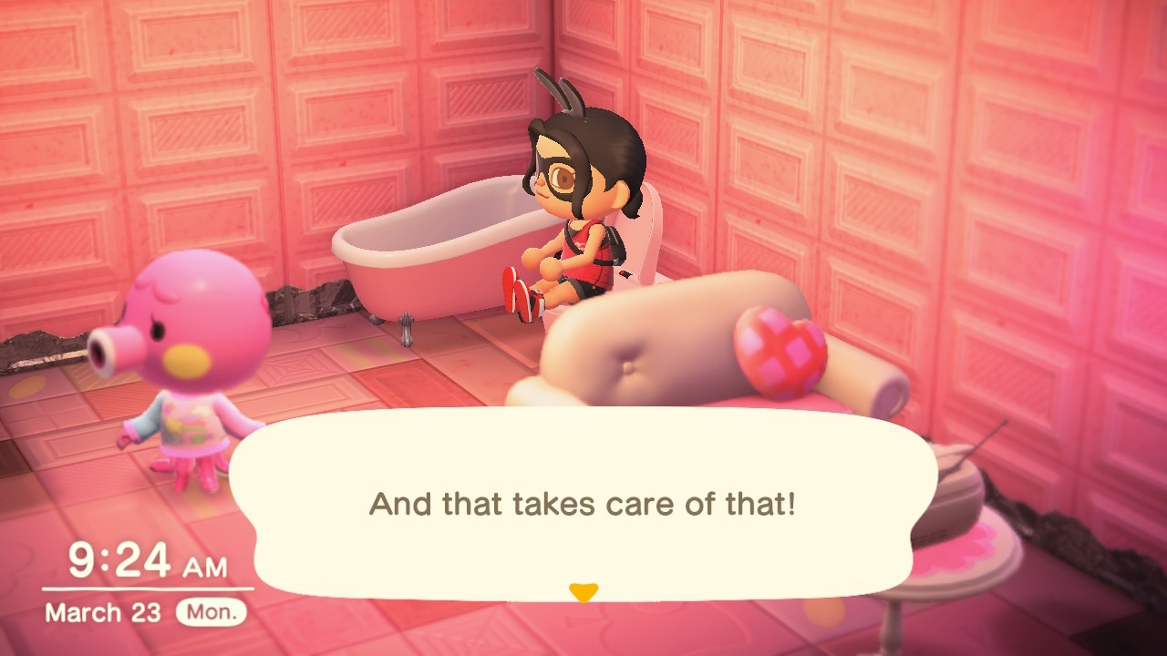 그럼 동물의 숲: 뉴 호라이즌에서 똥을 어떻게 싸나요 ? 물론 변기에 앉으면 됩니다.