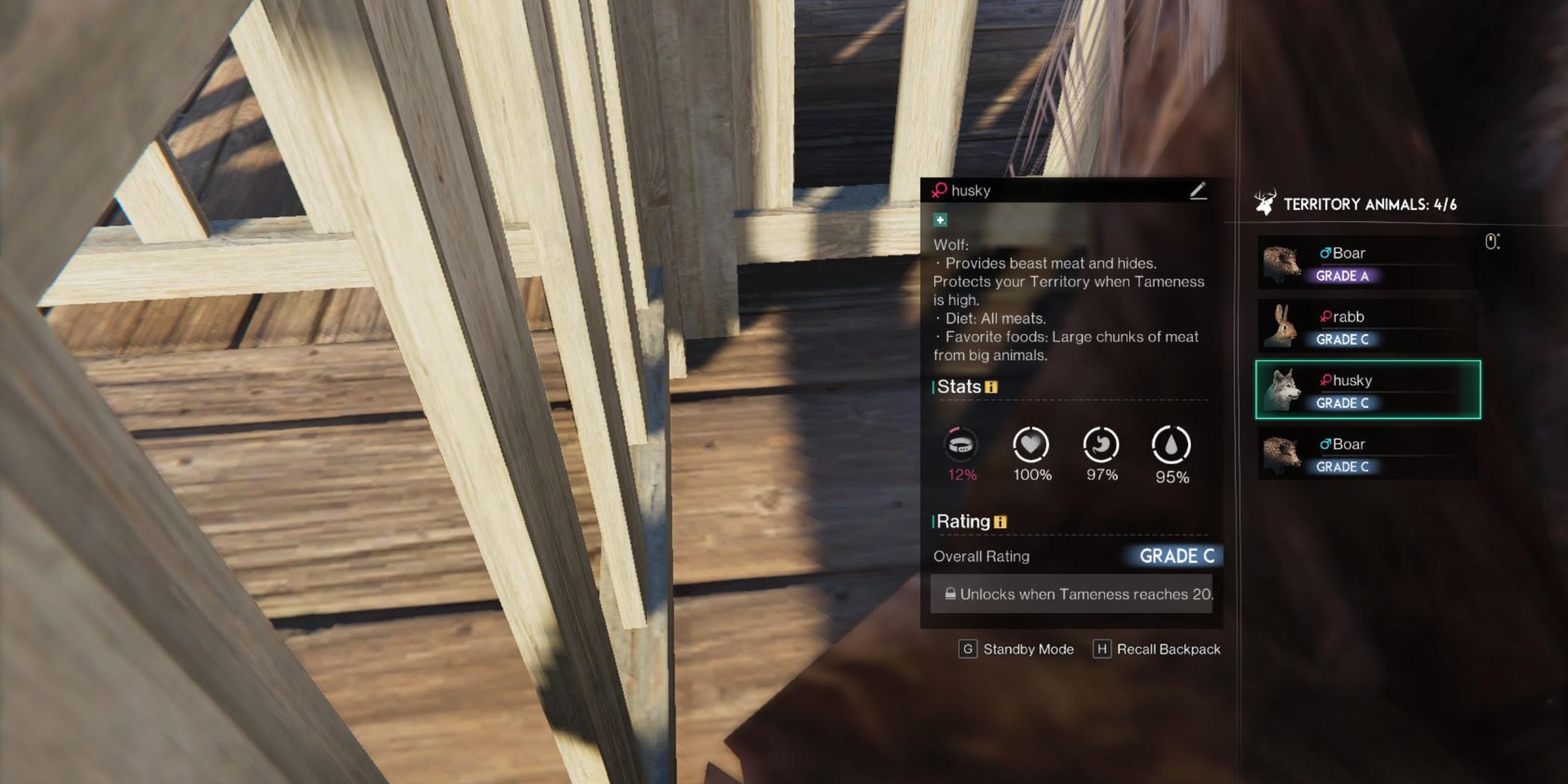 멧돼지나 늑대와 같이 공격적인 동물을 잡았다면 방어 구조물을 비활성화 해야 합니다 . 그렇지 않으면 실수로 동물을 공격할 것입니다. 또한 공격적인 동물과 온순한 동물을 따로 두십시오. 서로 공격할수도 있습니다.