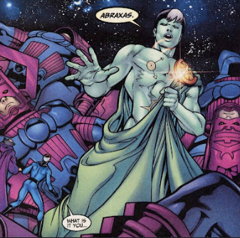 아브락사스는 현실과 질서의 균형이 무너질 때 나타나는 혼돈과 파괴의 화신입니다. 그는 멀티버스의 자연적 현상으로서, 이터니티의 대척점에 있는 존재라고 할 수 있습니다. 그의 힘은 멀티버스를 뒤흔들 정도로 강력하며, 현실을 조작하고 다른 차원의 존재들을 마음대로 소멸시킬 수 있습니다. 아브락사스가 활동하는 순간부터 현실 전체가 붕괴될 위험에 처하며, 그의 존재 자체가 우주의 질서를 위협하는 수준입니다. 갤럭투스조차도 그의 힘을 두려워할 정도로 막강한 존재입니다.