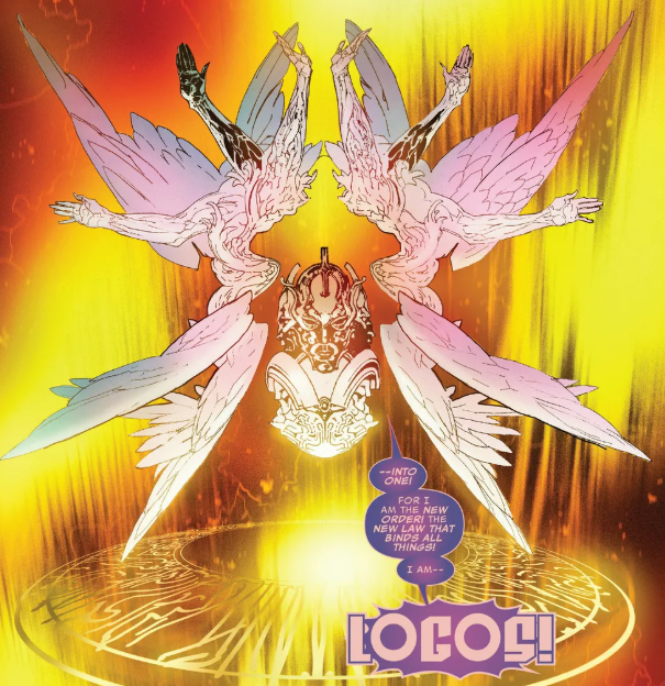 로고스는 우주의 조화와 질서를 상징하는 존재로, 혼돈과 균형의 힘을 조절하는 역할을 합니다. 그는 셀레스티얼, 리빙 트리뷰널, 이터니티와 같은 강력한 존재들과 동등한 수준의 힘을 가진 신적 존재입니다. 로고스는 특정한 개념이나 실체를 초월한 존재로, 우주적 사건이 벌어질 때 그 균형을 맞추는 역할을 합니다. 그는 마블 유니버스 내에서 거의 등장하지 않지만, 그 영향력은 절대적입니다.