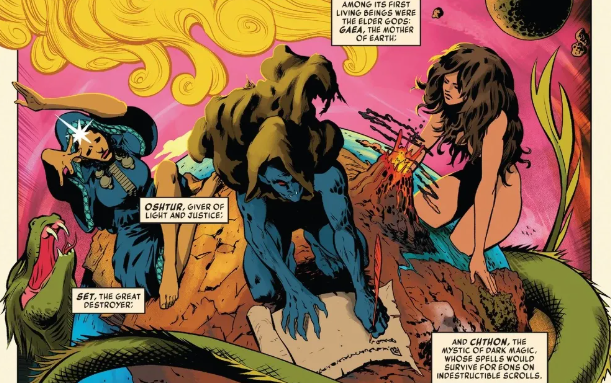 - 특징: 우주가 형성될 초기부터 존재했던 신적 존재들로, 지구와 우주의 다양한 신화적 요소들의 근원이 됨. 일부는 악에 물들어 버려졌고, 일부는 후대 신들과 충돌하며 역사에 개입함.