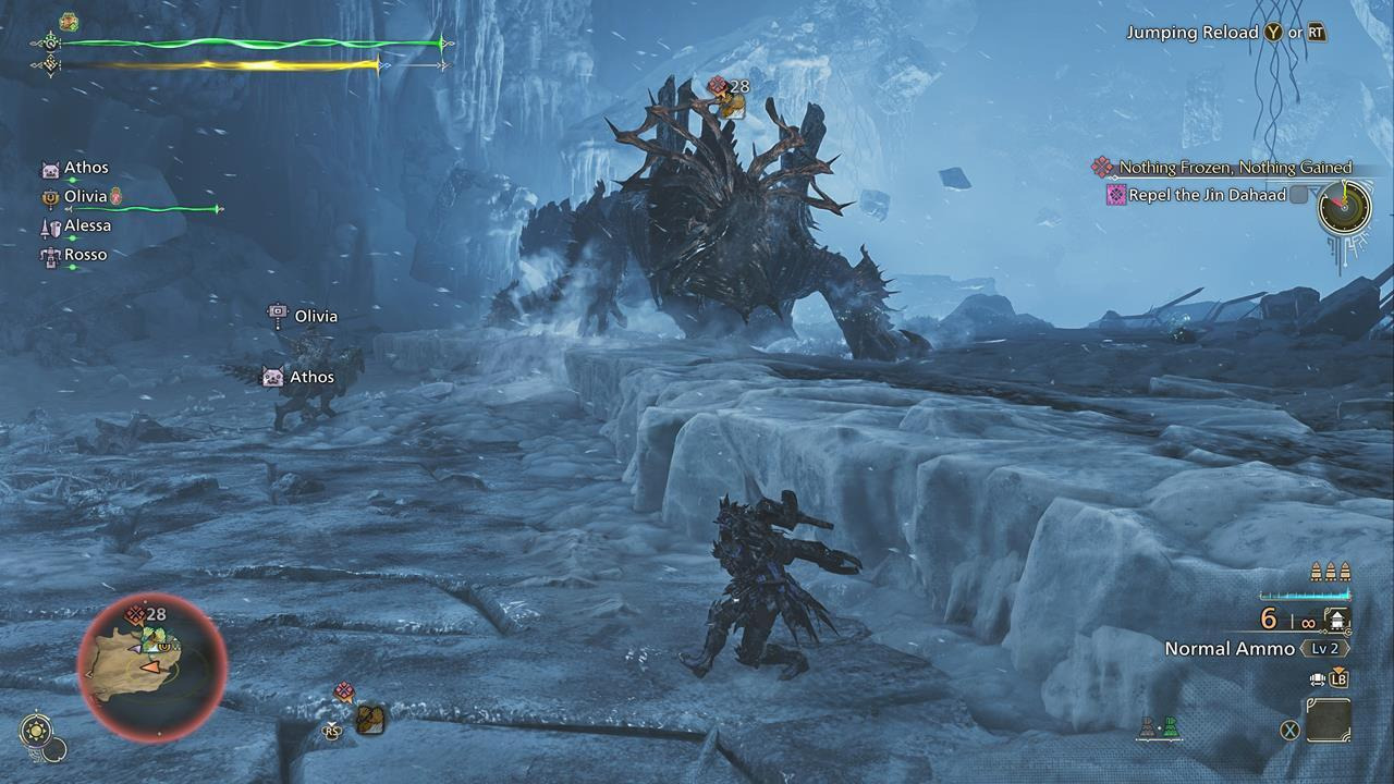 몬스터 헌터 와일즈의 Jin Dahaad 몬스터는 여러 단계의 만남으로 간주될 수 있습니다. 기본적으로 여러 신체 부위(예: 두개골, 다리, 꼬리)에 모두 보호용 얼음판이 있습니다. 이것을 파괴하면 복부/등의 능선에 남아 있는 얼음판을 깨뜨릴 수 있습니다.