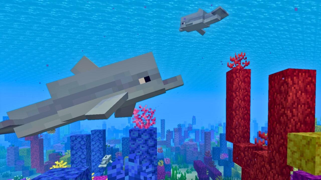 돌고래는 마인크래프트에서 귀중한 전리품과 지역으로 안내해 주기 때문에 유용합니다. 돌고래는 얼어붙지 않은 바다에서 생성되며, 돌고래 근처에서 수영하면 돌고래의 우아함 효과를 받아 수영 속도가 크게 증가합니다. 돌고래에게 생대구나 연어를 먹이면 가장 가까운 묻힌 보물이나 바다 유적을 향해 헤엄칩니다. 돌고래는 현실 세계의 돌고래처럼 물 밖으로 뛰어오를 수 있으며, 돌고래 근처 바다에 물건을 떨어뜨리면 돌고래가 그 물건을 쫓아갑니다.