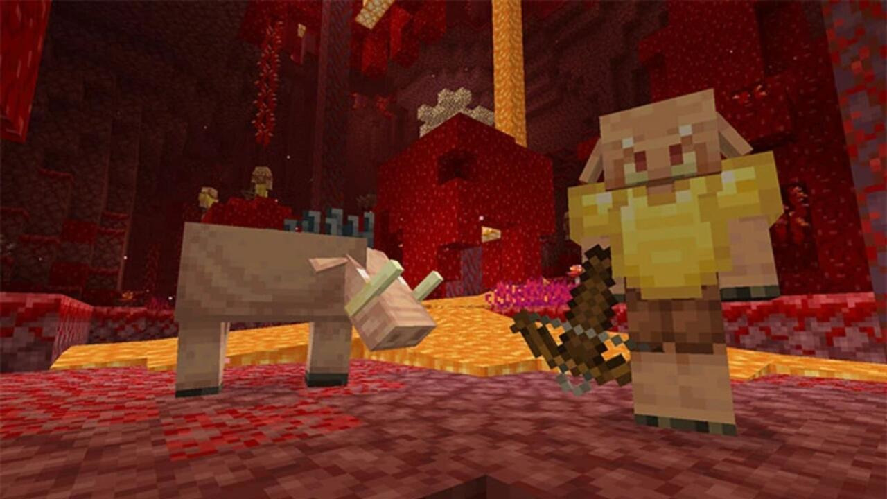 피글린과 피글린 브루트는 네더에서 생성됩니다. 피글린 브루트는 요새 잔해에 나타나며 피글린처럼 물물교환을 하지 않습니다. 또한 금에 정신이 팔리지도 않습니다. 금 갑옷을 입거나 일반 피글린에게 금을 제공하면 공격을 막을 수 있으며, 피글린이 금괴와 희귀한 재료를 교환할 수 있는 물물교환 인터페이스를 열 수 있습니다. 피글린 브루트는 황금 도끼를 들고 공격하려 돌진합니다. 피글린은 당신이 금 아이템을 들고 있는 것을 발견하면 질투심에 코를 킁킁거립니다.
