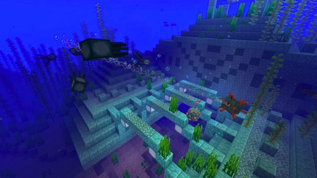 가디언은 꼬리와 주황색 가시가 달린 수중 지뢰처럼 보입니다. 바다 유적 안팎에서 생성되며 레이저 빔을 발사하여 공격합니다. 근접 공격으로 공격하면 플레이어에게 가시가 박히는 것처럼 피해를 입힙니다. 가디언은 사망 시 프리즈머린 파편을 떨어뜨리며, 일정 확률로 생대구나 프리즈머린 수정을 떨어뜨립니다. 수영 중에는 가디언의 가시가 수축되어 발견하기가 더 어려워집니다. 가디언은 눈으로 주변 플레이어를 추적하지만, 투명화 물약을 사용하면 가디언의 공격에 면역이 되어 공격을 시도하지 않습니다.