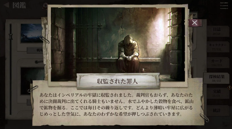 각 이벤트를 성공적으로 클리어하면 새로운 카드나 장비를 획득할 수 있습니다. 이렇게 수집한 요소들을 통해 자신만의 덱을 구축하고 캐릭터를 강화해 나가는 것이 게임의 핵심 루프입니다. 게임북 스타일의 풍부한 텍스트와 선택지를 통해 몰입감 있는 스토리를 경험하면서도, 동시에 전략적인 덱 구축의 재미를 느낄 수 있습니다.