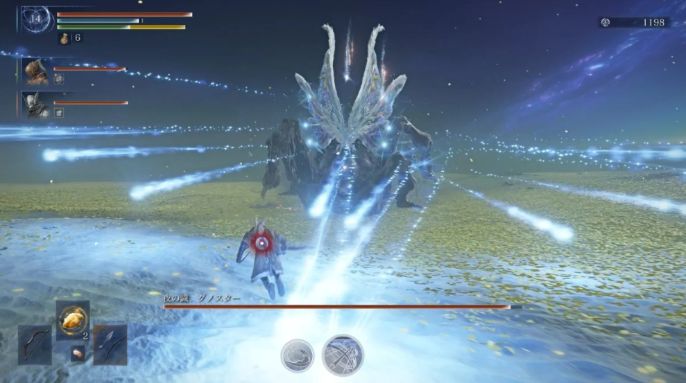 강화 그노스타는 나방과 같은 외형을 가진 '밤의 식(識), 그노스타'와 전갈 같은 거대한 모습의 '견방(堅盾)의 포르티스'가 함께 행동하는 듀얼 보스입니다. 일반적인 밤의 왕과는 달리, 처음부터 그노스타가 포르티스의 등에 올라탄 상태로 전투가 시작됩니다.