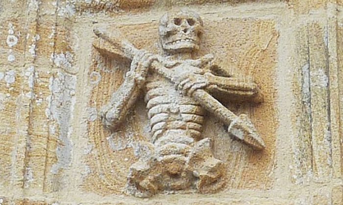 Ankou, Brittany Ploudiry에 있는 St Joseph 예배당의 납골당 조각에 그려져 있습니다.