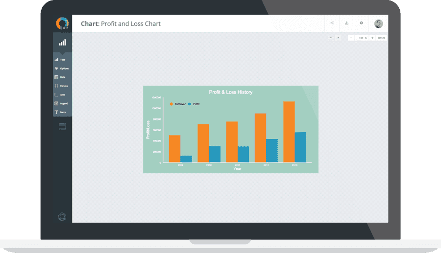 Livegap는 3개의 패널로 구성된 간단한 UI가 특징을 가지고 있는 것입니다. 패널은 각각 차트 전시, 스타일 설정, 데이터 입력에 3가지 사용됩니다. 데이터의 변화는 실시간으로 그래프에 반영될 수 있습니다. 수동으로 데이터를 입력할 뿐만 아니라 엑셀이나 스프레드시트에서 데이터를 복사할 수도 있습니다. 그래프는 PNG 또는 HTML 형식으로 다운로드할 수 있으며 등록될 경우 온라인으로 저장할 수 있습니다.