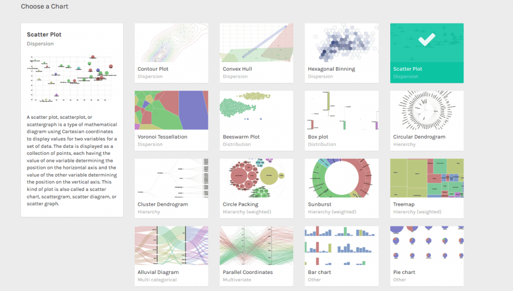 CSV, tsv 파일 등 데이터 형식을 시각화하려면 RawGraphs를 해 보세요 . 프로그래밍에 익숙하다면 준비된 그래프에서 선택할 수 있을 뿐만 아니라 높은 맞춤형 차트를 개발할 수도 있는 그래프 그려주는 사이트입니다.